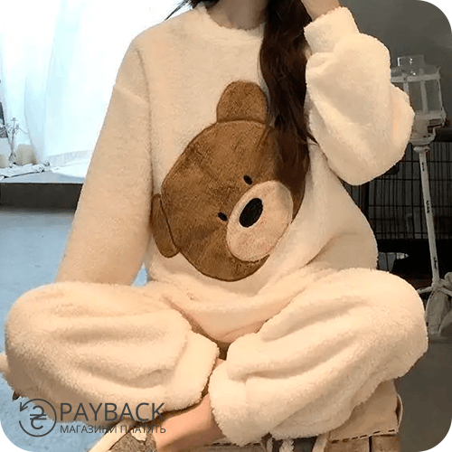 Затишний жіночий комплект для дому з м’якого флісу стане ідеальним вибором для осінньо-зимового сезону. У набір входять довгі штани та кофточка з довгими рукавами, які забезпечують тепло та комфорт. Вільний крій не сковує рухів, а милий ведмедик додає образу грайливості й ніжності. Практичний, теплий та стильний одяг для щоденного відпочинку вдома.
